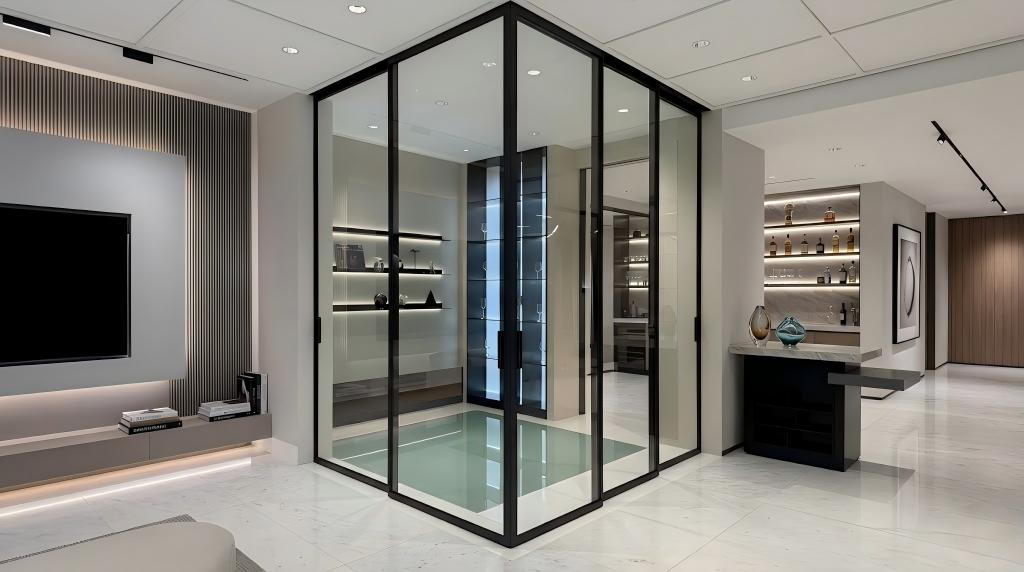 A série STARLIGHT Linked Door introduz uma abordagem revolucionária à divisão espacial interior. Ao eliminar totalmente o trilho inferior, essas portas de alumínio premium proporcionam uma transição completamente livre de barreiras entre os quartos, tornando-as a escolha definitiva para closets modernos, salas de estar luxuosas e divisórias comerciais de luxo. O inovador sistema de articulação suspensa cria um efeito visual flutuante impressionante, mantendo estabilidade estrutural impecável, design de montagem rápida e operação diária sem esforço.