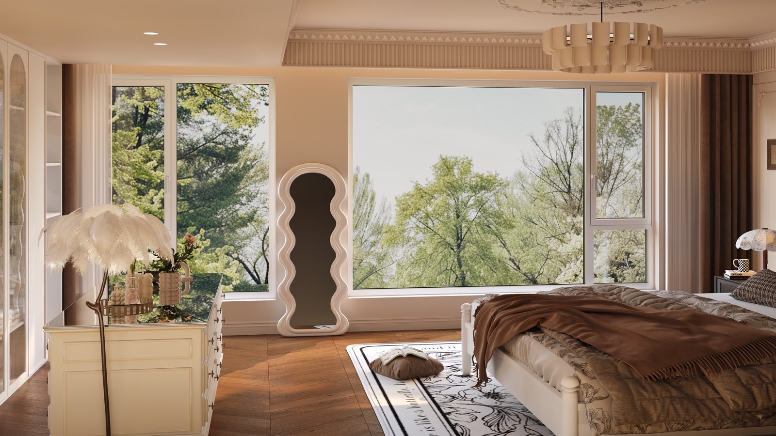 Para lidar com chuvas fortes e tempestades severas, esta janela de abertura interna apresenta um inovador caminho de drenagem oculto que canaliza a água sem furos de drenagem externos visíveis. Este design não só mantém a fachada exterior limpa, mas também garante uma classificação de estanqueidade de nível 6. O alinhamento da estrutura interna e externa completamente nivelado reforça os painéis de vidro, aumentando a resistência geral à carga do vento para o Nível 7.