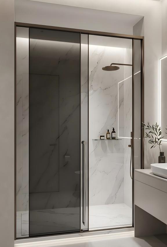 A porta deslizante de alumínio Y995 incorpora tecnologia avançada de vedação estanque. As tiras de vedação magnética integradas garantem uma barreira impermeável perfeita, mantendo efetivamente as áreas úmidas e secas completamente separadas, mantendo um ambiente de banheiro limpo e seguro. O design de limite discreto oferece acessibilidade perfeita sem comprometer seu desempenho superior de proteção contra vazamentos.